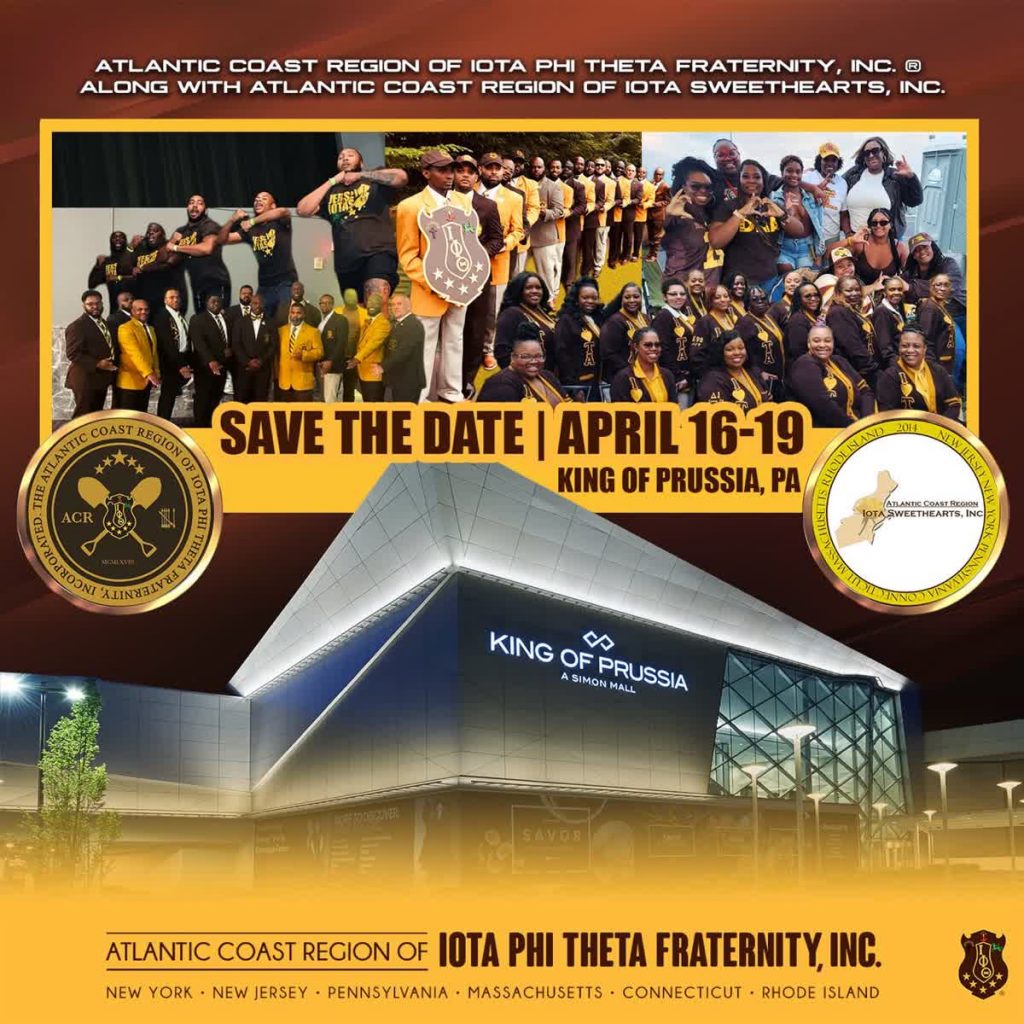The upcoming ACR Regional Conference will be in King of Prussia PA. The brothers of Iota Phi Theta Fraternity, Inc. and Iota Sweethearts, Inc. will be held on April 16th – 19th, 2026!